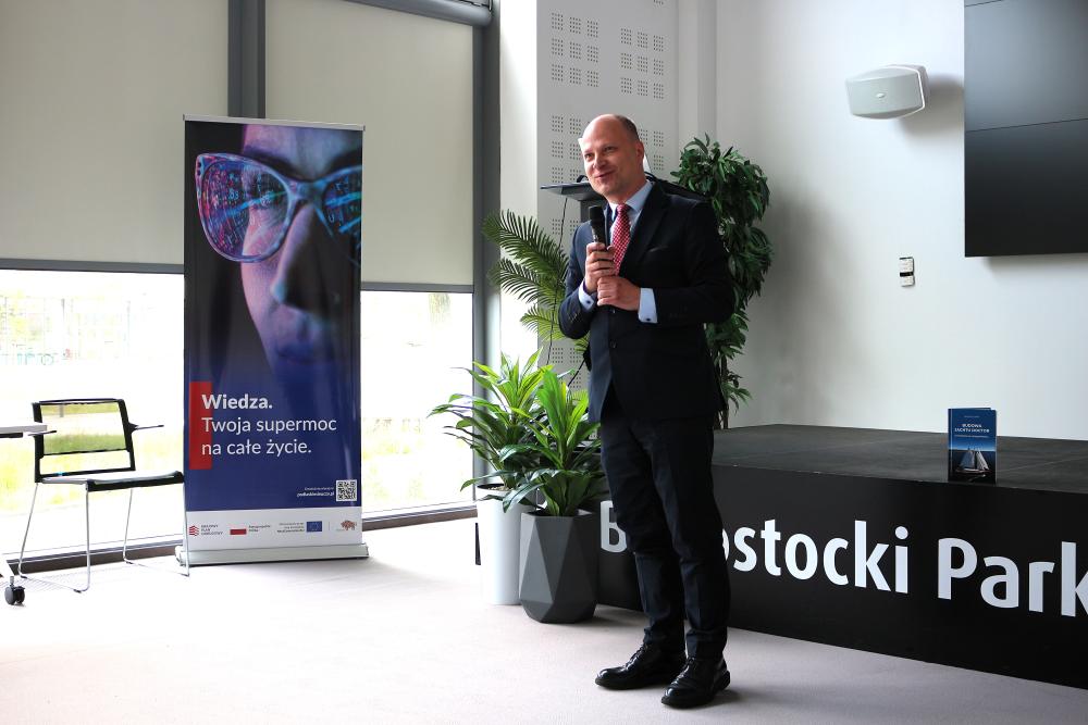 W swoim wystąpieniu „Na co to komu? Jaki jest sens zdobywania praktycznych umiejętności?” pan Maciej Ejdys, reprezentujący białostocką spółkę Archime, podzielił się z uczestnikami opowieścią o swojej drodze do sukcesu zarówno w życiu zawodowym, jak i prywatnym, o mocy marzeń, ale też o tym, dlaczego warto sobie najpierw zadać pytanie: „dlaczego?”.