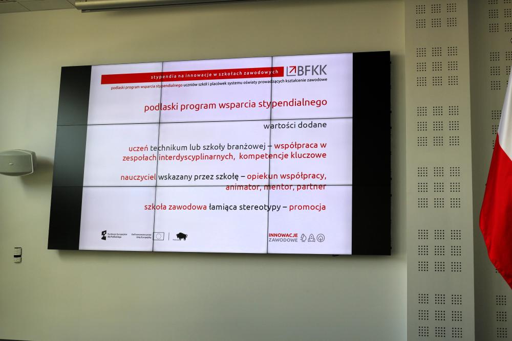 Trzecia część seminarium poświęcona została podlaskiemu programowi wsparcia stypendialnego uczniów szkół i placówek systemu oświaty prowadzących kształcenie zawodowe. O projekcie i wynikających z niego możliwościach opowiedział pan Michał Skarzyński z Białostockiej Fundacji Kształcenia Kadr, wyjaśniając, dla kogo przeznaczone jest wsparcie, jakie są warunki jego przyznania i wysokość. „Podlaski program wsparcia stypendialnego” w latach 2024-2028 zapewni do 6 000 zł stypendium i mentoring 900 najzdolniejszym uczniom szkół zawodowych. Podkreślił, że chociaż wsparcie finansowe w postaci stypendium trafia bezpośrednio do uczniów, to stanowi również doskonałą formę promocji dla szkół zachęcających do udziału w projekcie. Projekt, oprócz stypendium za wyniki w nauce, przewiduje również pracę innowacyjną oraz konkurs prac stypendystów – najlepiej ocenione prace zostaną nagrodzone. Objęcie wsparciem uczniów szkół prowadzących kształcenie zawodowe to również przełamanie stereotypów: uczniów zdolnych znaleźć można wszędzie, bez względu na obraną ścieżkę edukacji.